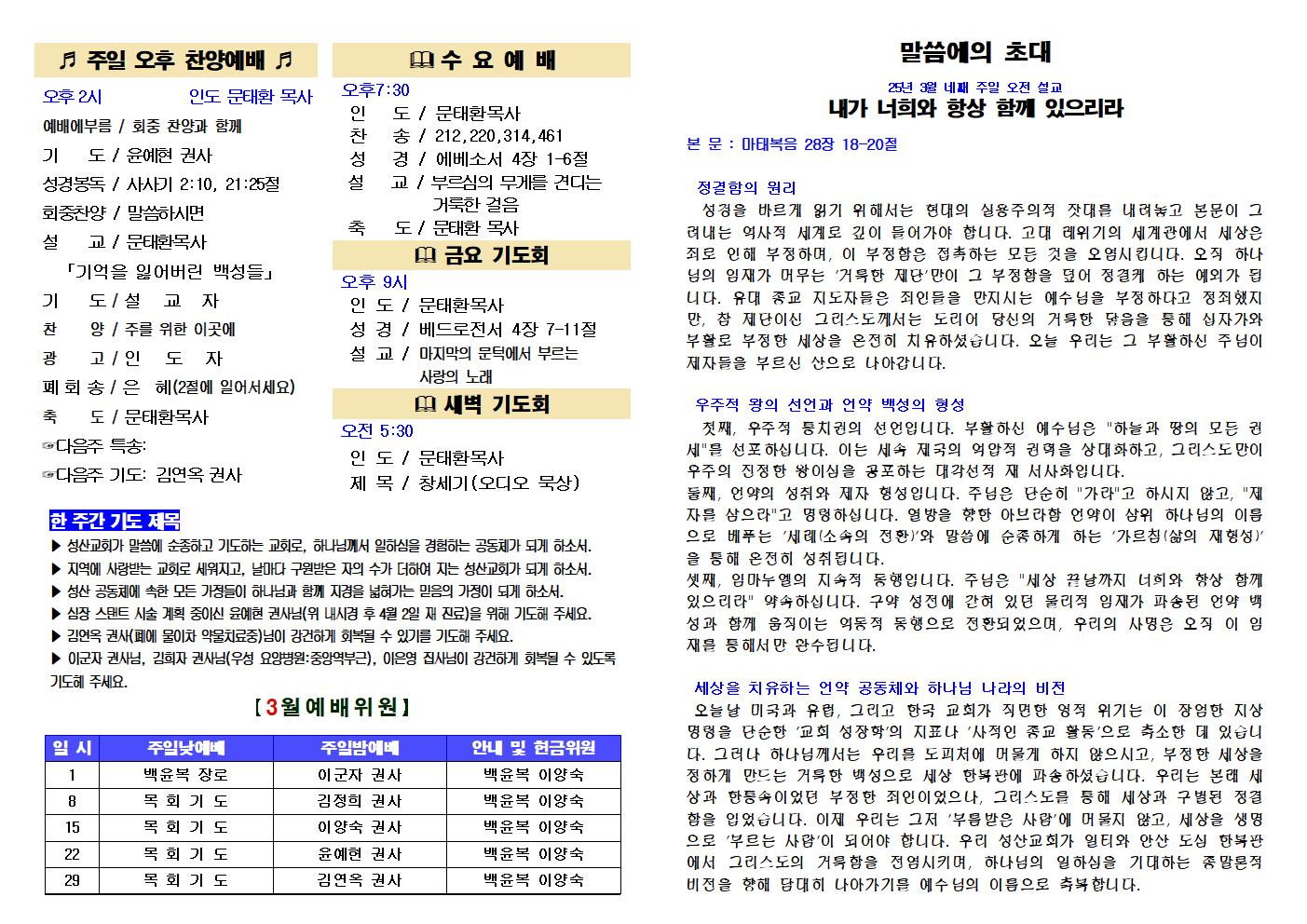26.3.22 교회 주보