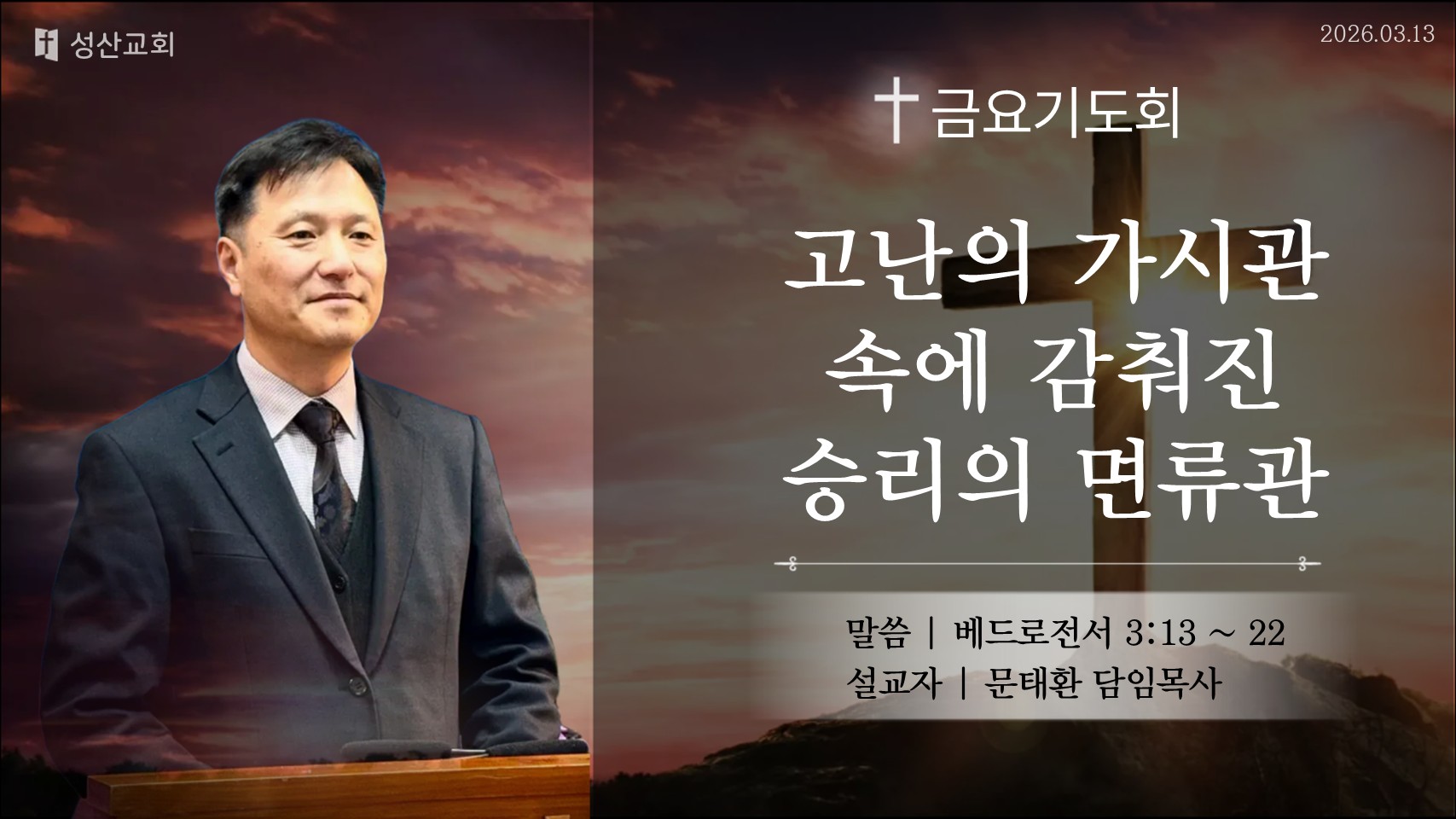 2026.3.13 금요 기도회 설교: 고난의 가신관 속게 감춰진 승리의 면류관