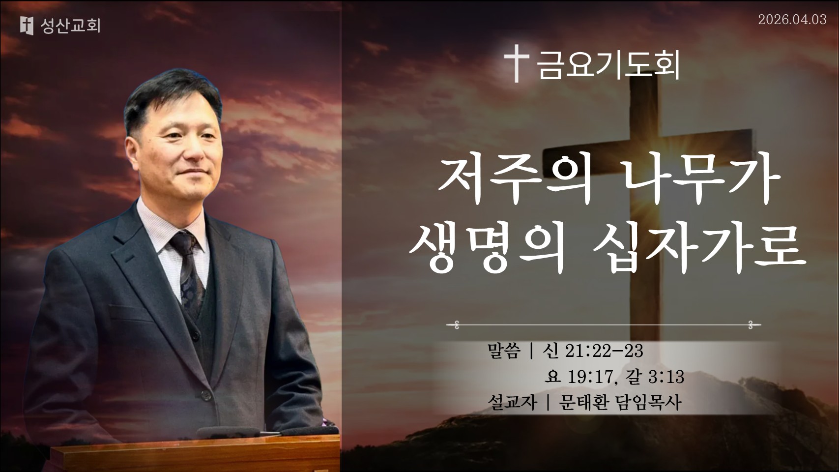 2026-04-03 | 안산성산교회 | 금요기도회 | 저주의 나무가 생명의 십자가로 Sung San ChTV 구독자 17명