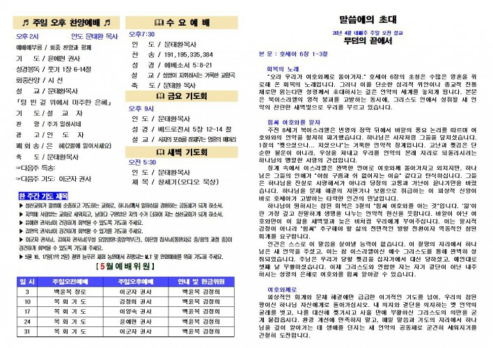 2026-04-24 | 안산성산교회 | 금요기도회 | 사자의 포효를 잠재우는 영원의 메아리