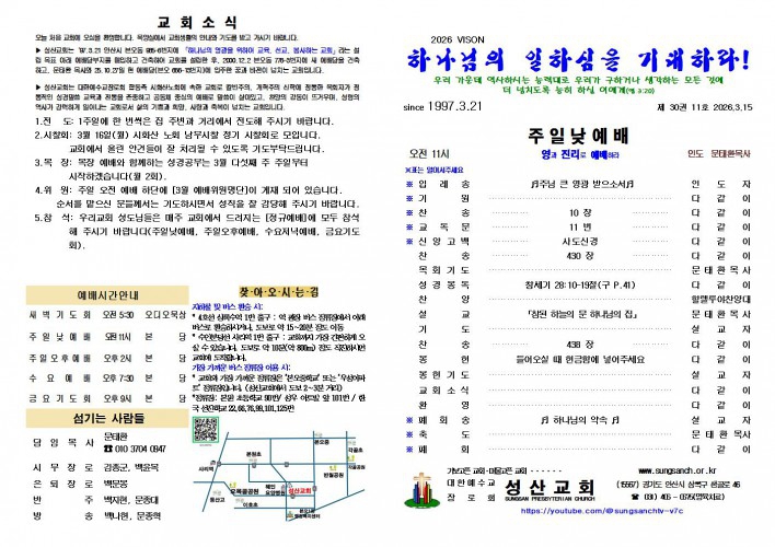 2026.3.11 수요 저녁설교: 하나님의 비밀
